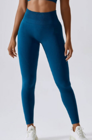 - A pair of blue athletic leggings can be worn with a lilac top to create a fresh, spring look.