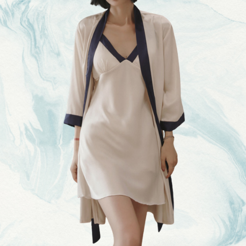BRIDE Bridal satin long-sleeved robe and nightgown set with goldS, M, L, ΧLClick for availability