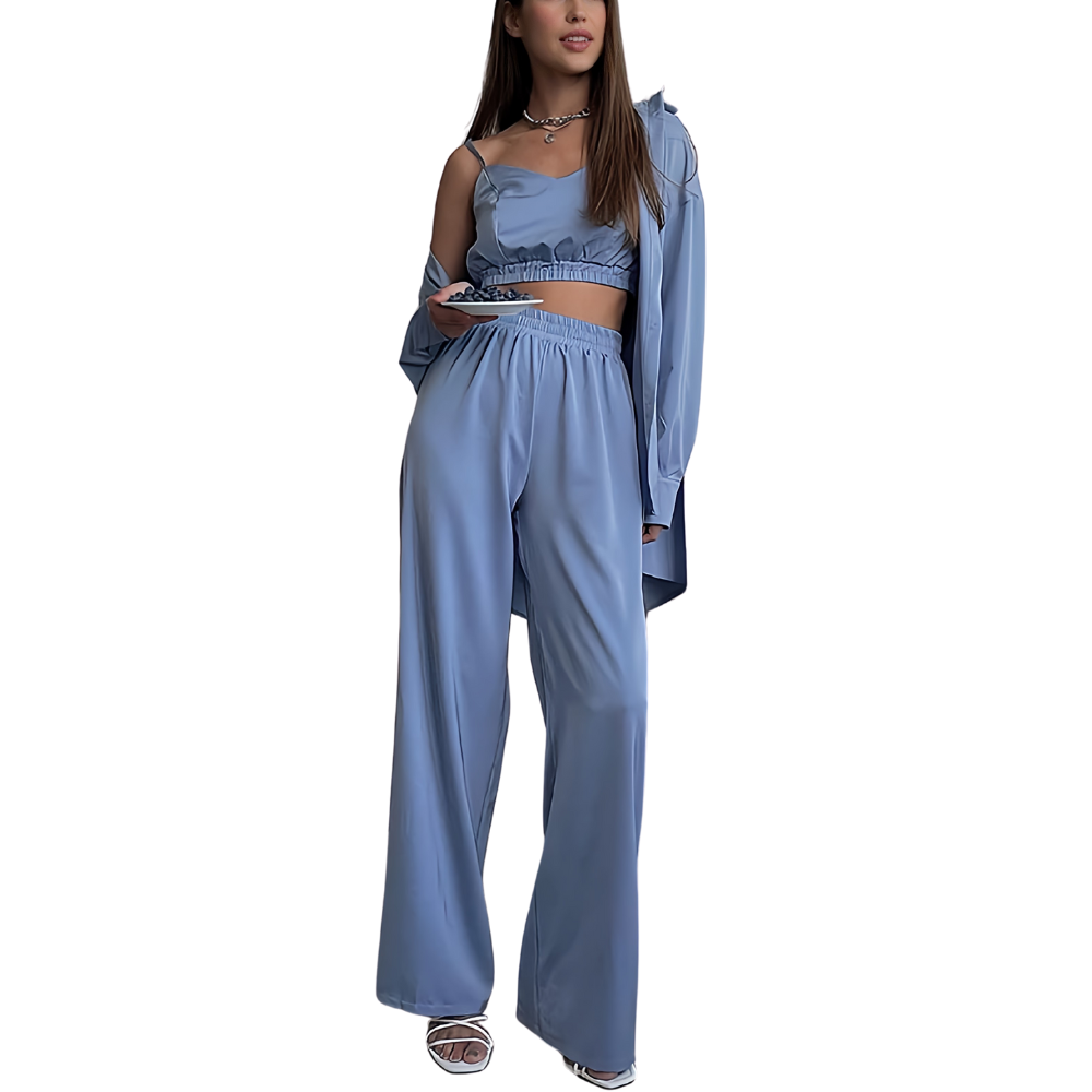 AMANI Σατέν σετ πιτζάμας 3 τεμαχίων με μπουστάκι, μακρυμάνικη πουκαμίσα & ασορτί παντελόνα