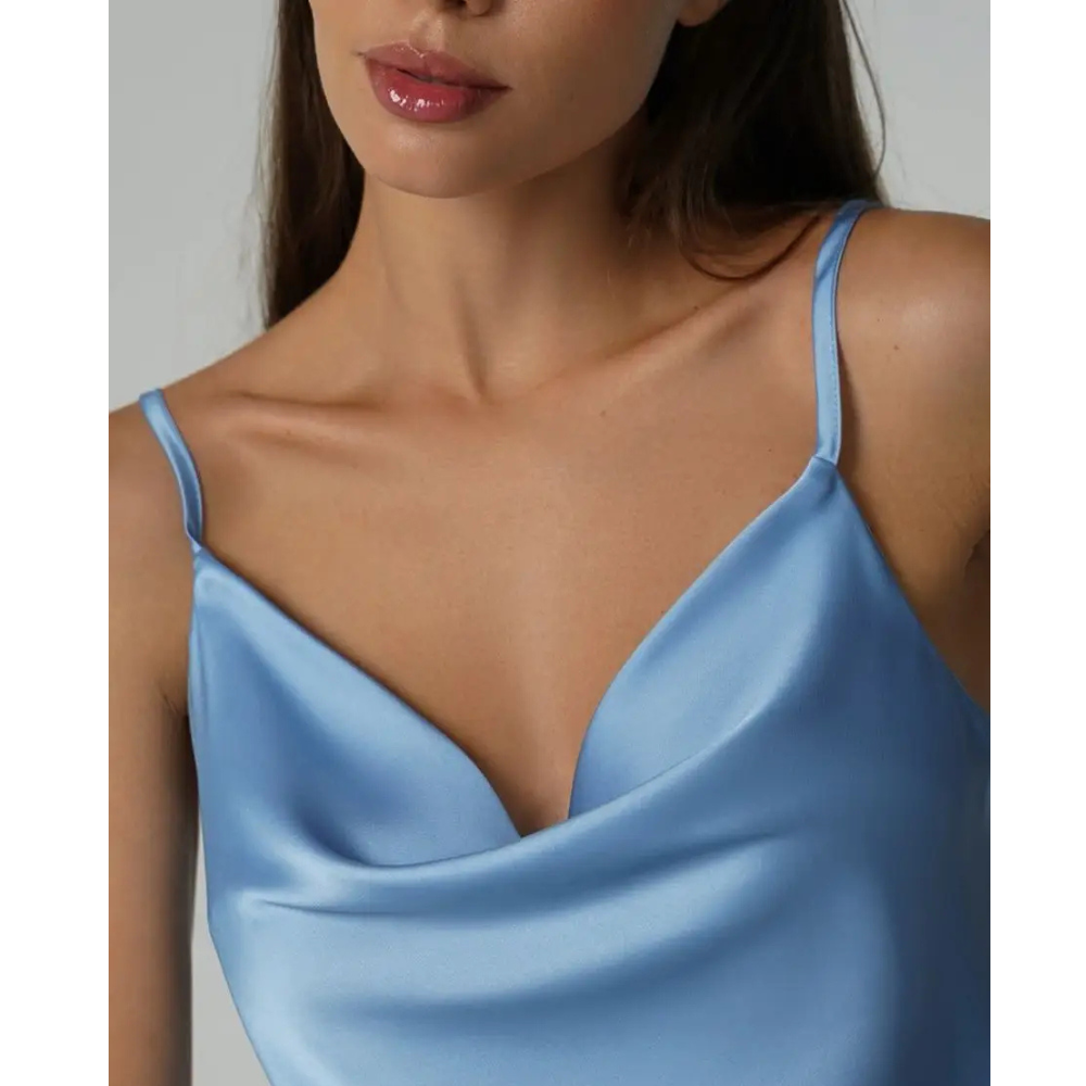 Ντραπέ τοπάκι σατέν υφής με αέρινη χαλαρή γραμμή για να κολακεύει το μπούστο