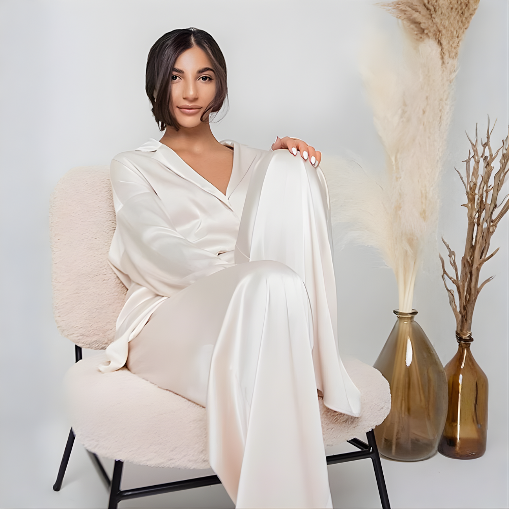 Θες μια πιτζάμα ανάλαφρη και άνετη με στυλ και εκφραστικότητα που θα φορούσε ακόμα και μια σταρ που θα σε κάνει και σένα γοητευτική και θα σε κολακεύει; Αν ναι τότε δοκίμασε το σετ πιτζάμας MEGAN με χαλαρής γραμμής πουκαμίσα με ζώνη που δένεις τη μέση για να δείχνει όπως εσύ θες είτε μεσάτη είτε ευρύχωρη και μακριά μανίκια με ασορτί παντελόνα με ψηλόμεση εφαρμογή και σατέν υφή για πιο αριστοκρατικά αποτελέσματα!