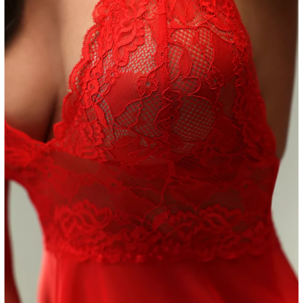 Αισθησιακό δαντελένιο νυχτικό με διαφάνεια και βαθύ μπούστο που δένει στο λαιμό και αφήνει ανοιχτή την πλάτη για να κολακεύει ολόκληρη την σιλουέτα σου
