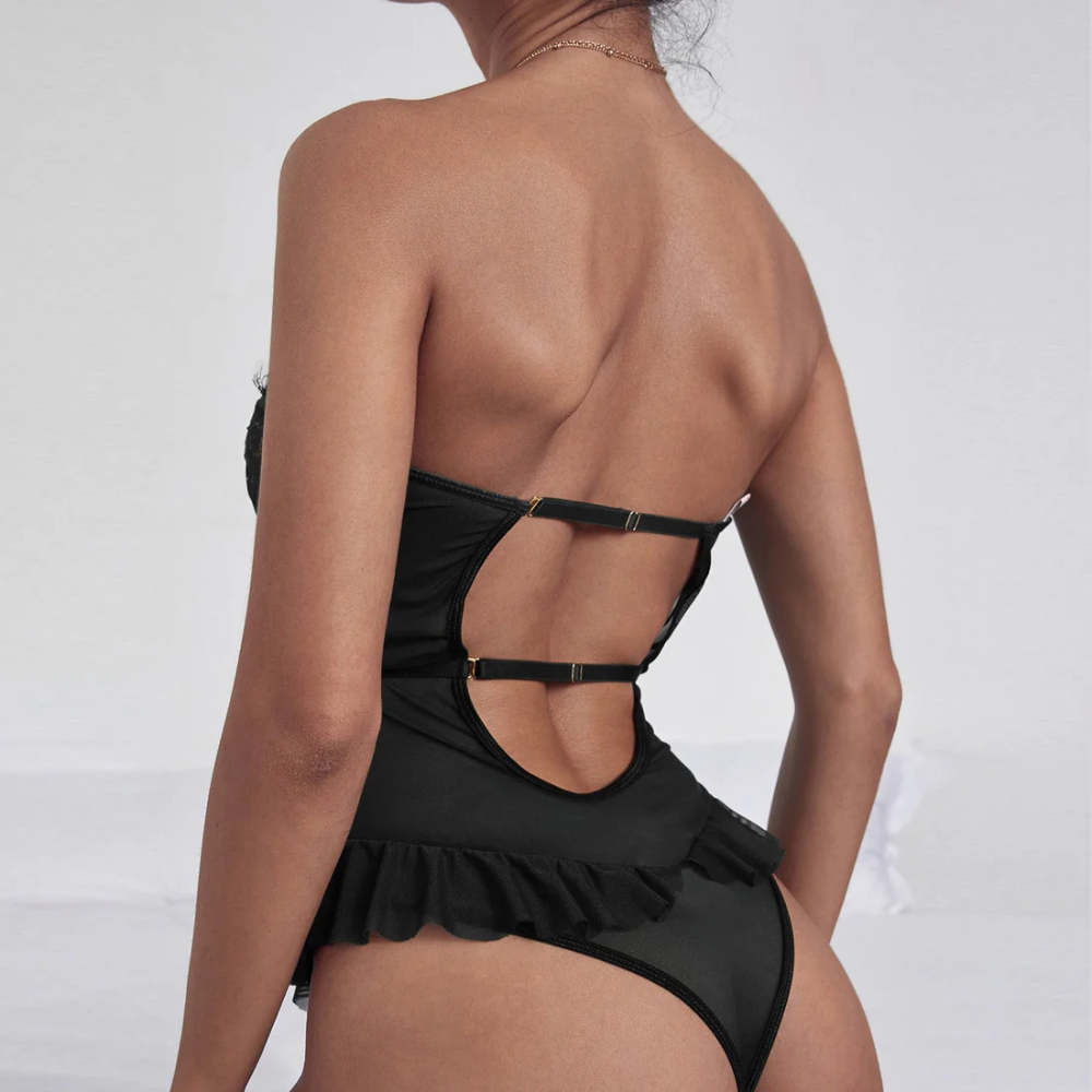 BRISTOL Στράπλες κορμάκι με δαντέλα, λεπτομέρεια βολάν & ζαρτιέρες