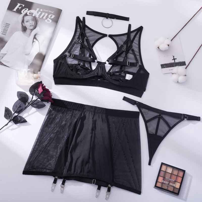 Ετοιμαστείτε να μεταφέρετε το παιχνίδι εσωρούχων σας στο επόμενο επίπεδο με το σετ εσωρούχων ZINA 3 τεμαχίων με ζαρτιέρες σαν φούστα και αποκαλυπτικά ανοίγματα στο πλάι που σίγουρα θα μαγνητίσει τα βλέμματα! Διαθέτει έναν υπέροχο συνδυασμό σουτιέν με μπανέλα για άφθονη στήριξη και διαφάνειες με αποκαλυπτικά ανοίγματα από λουριά, συνδυασμένη με μια εκπληκτική φούστα με δελεαστικές επίσης διαφάνειες. Οι ζαρτιέρες προσαρμόζονται στη φούστα, με σχέδιο που αγκαλιάζει τους γοφούς και κολακεύει τις καμπύλες σας!