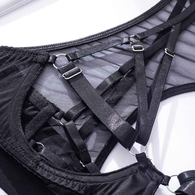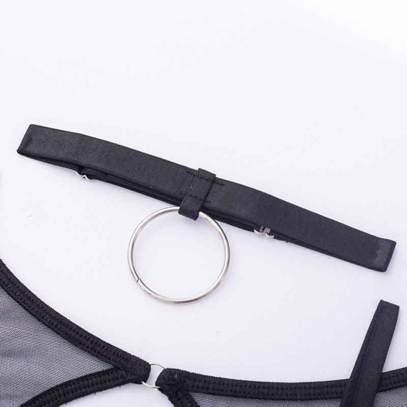 Σουτιέν με διαφάνεια και στραπς λουριά που αγκαλιάζουν το στήθος, choker με μεγάλο κρίκο, για μια πιο δελεαστική εμφάνιση