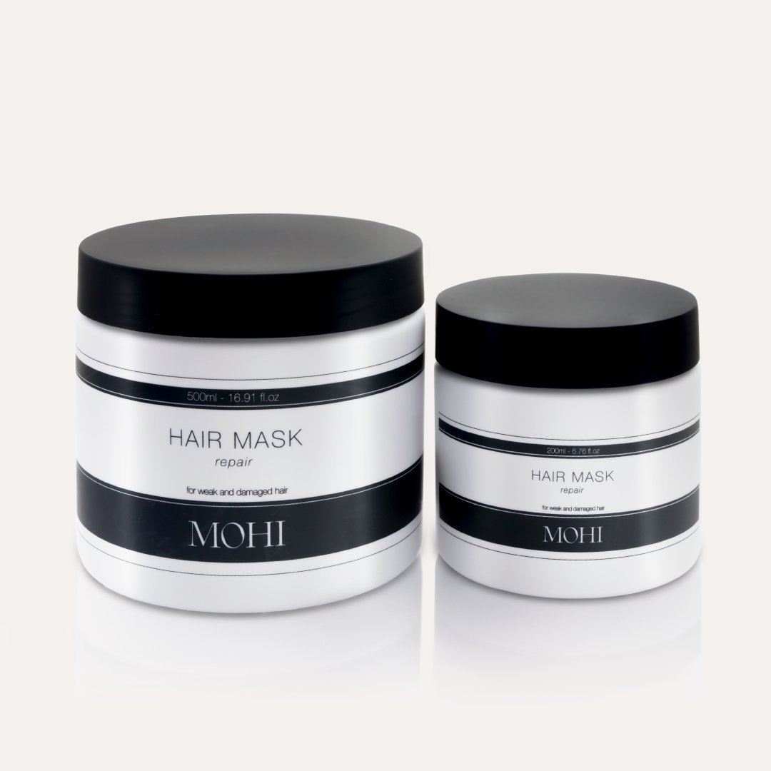 Η μάσκα μαλλιών MOHI διατίθεται σε 200ml και 500ml. Αυτή η μάσκα μαλλιών συνιστάται για επαγγελματική χρήση.