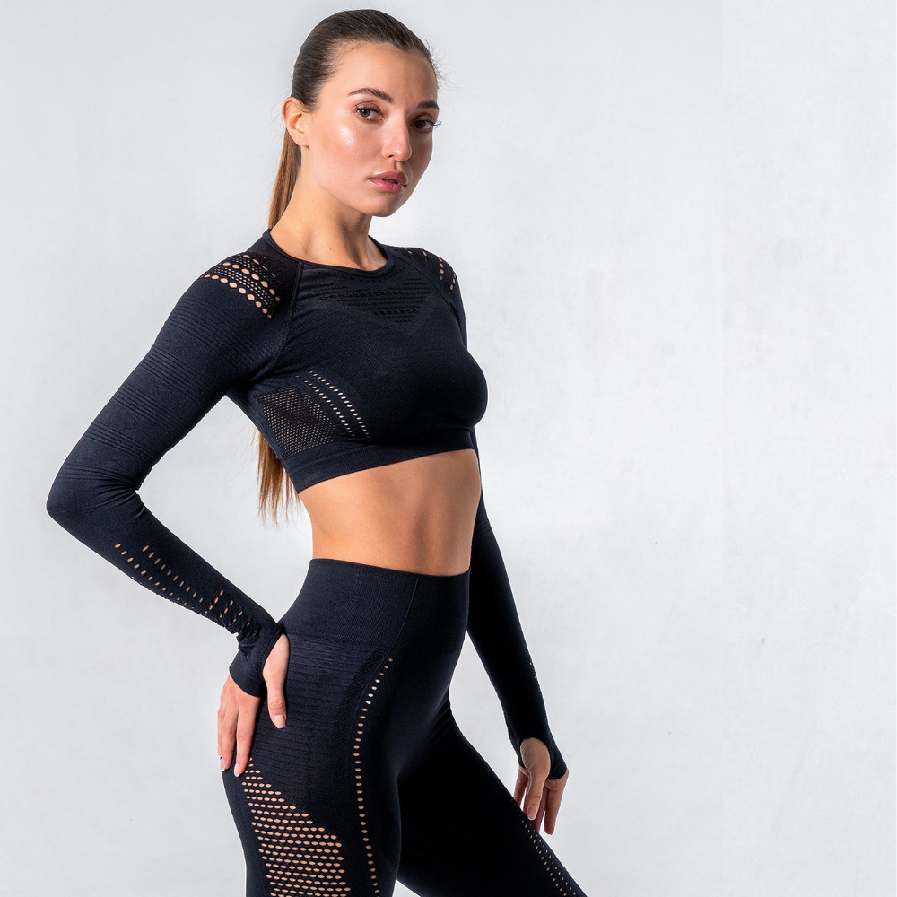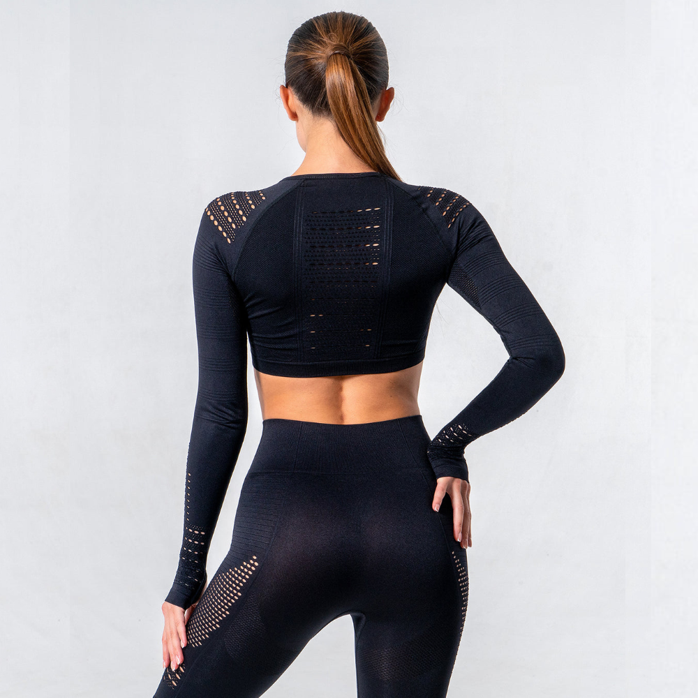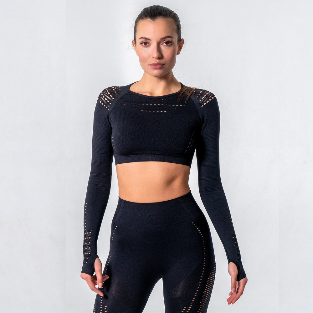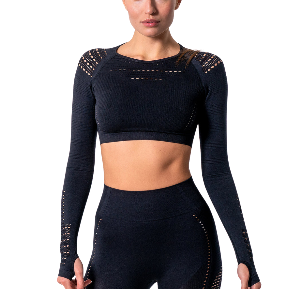 Μακρυμάνικο αθλητικό μπλουζάκι με ελαστικότητα και στρογγυλό λαιμό με τρυπητό σχέδιο για να κάνεις την αγαπημένη σου άσκηση με στυλ και άνεση