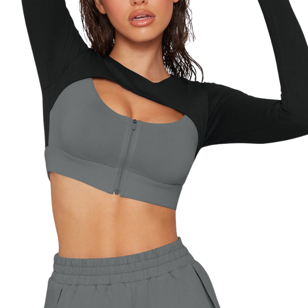 LORENA Αθλητικό μακρυμάνικο κροπ τοπ με φερμουάρ και μανικάκια με άνοιγμα στο μπούστο