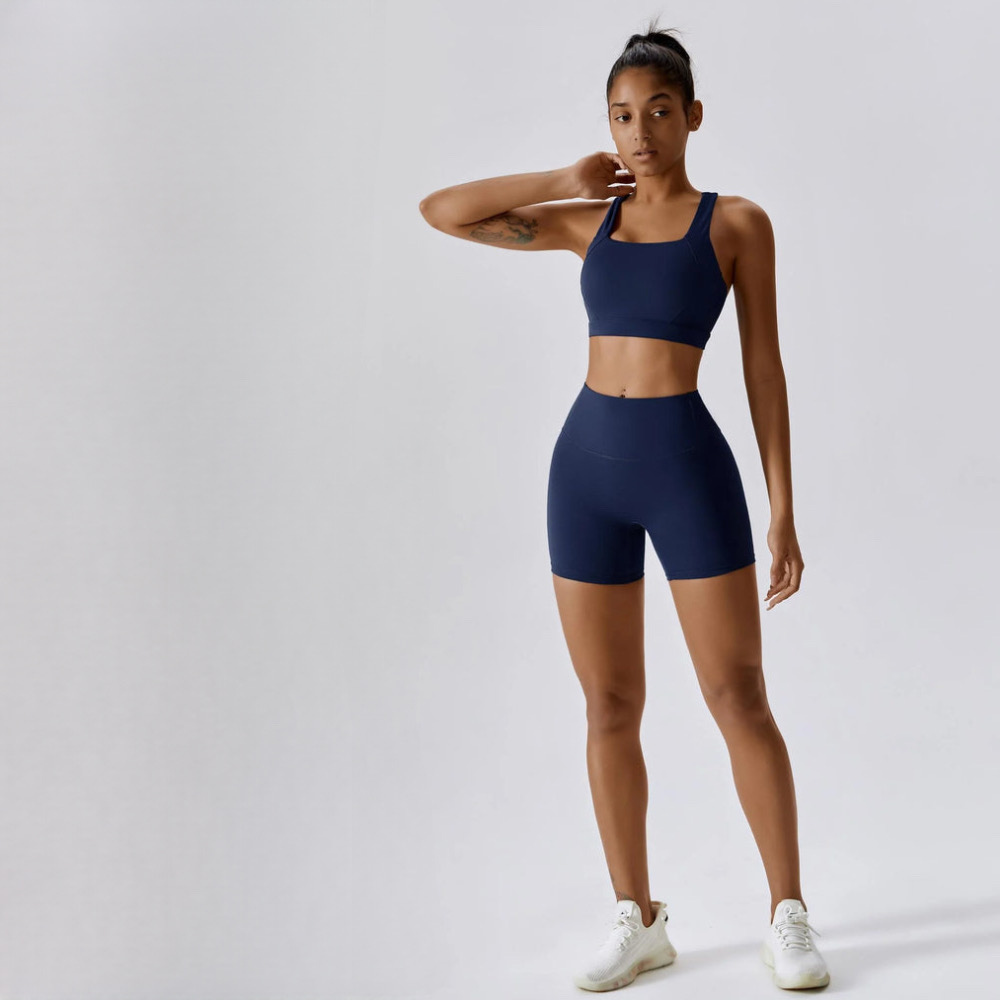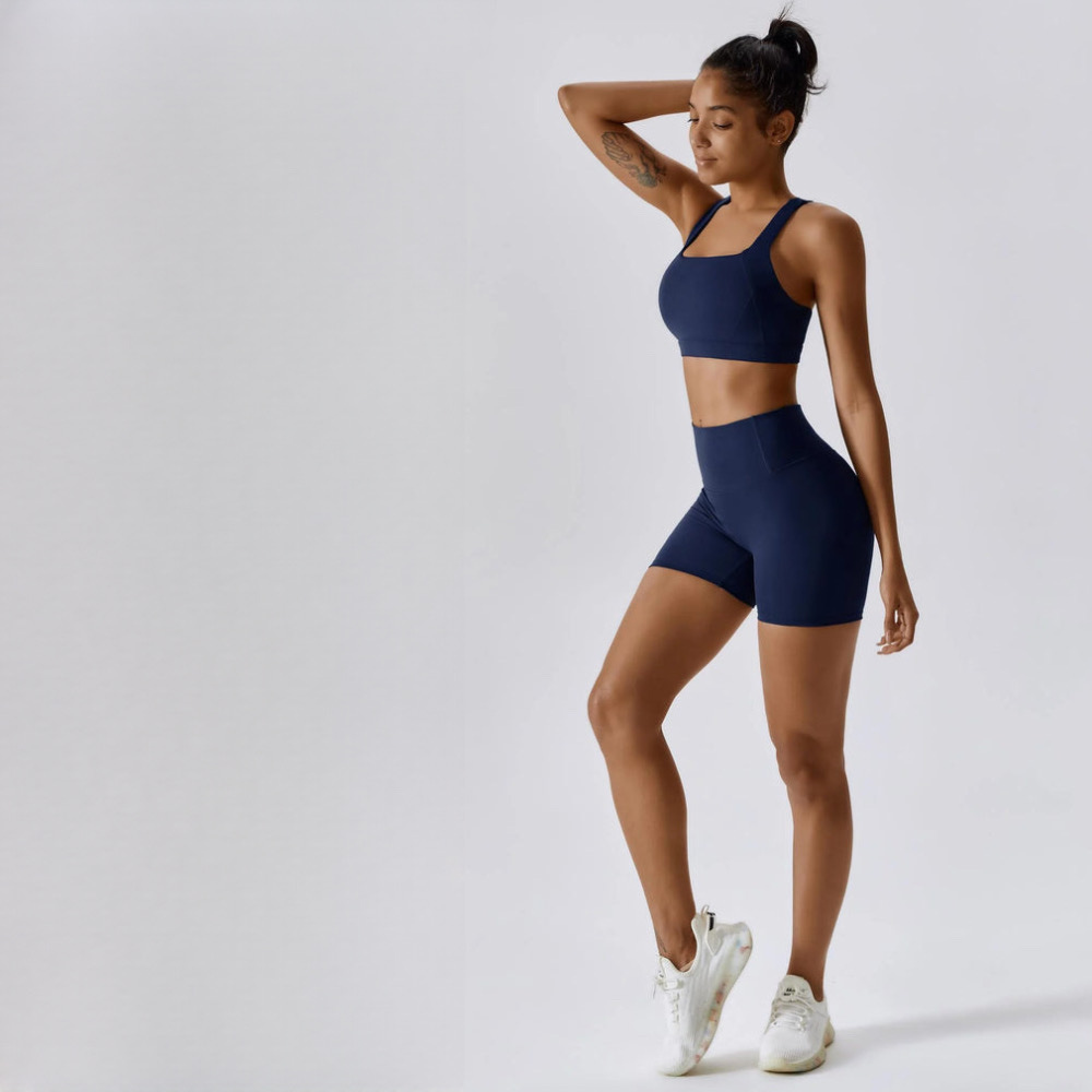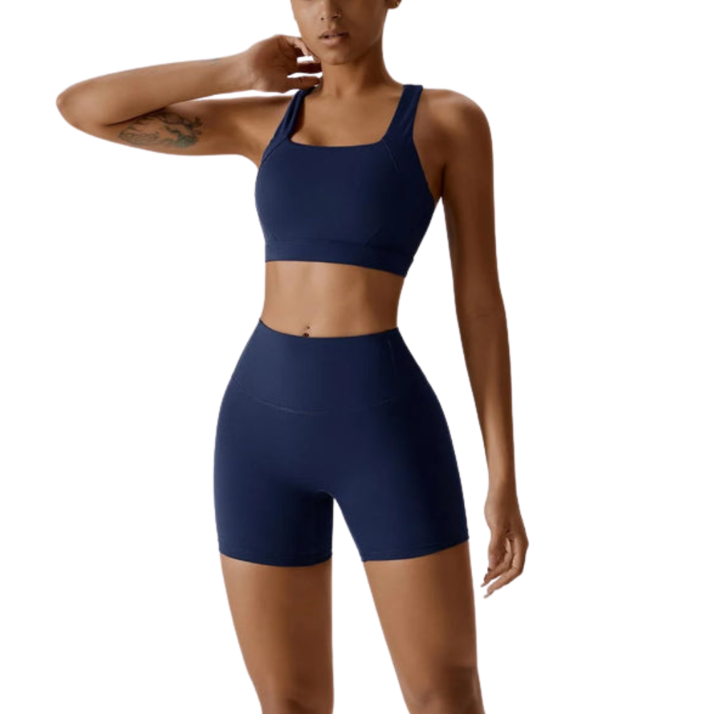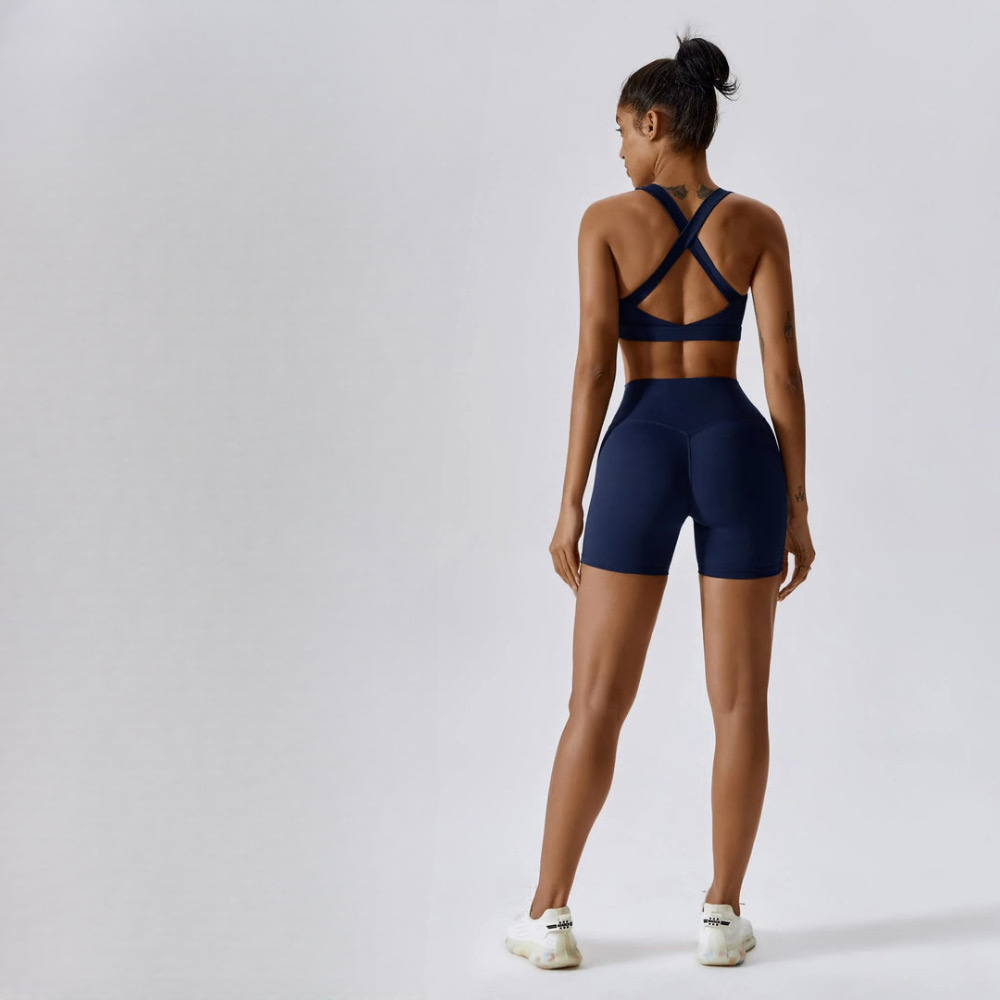 MONICA Αθλητικό κροπ ελαστικό μπουστάκι με ανοιχτό λαιμό, χιαστί πλάτη και χοντρή τιράντα