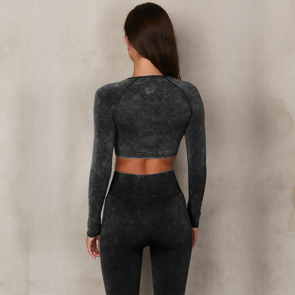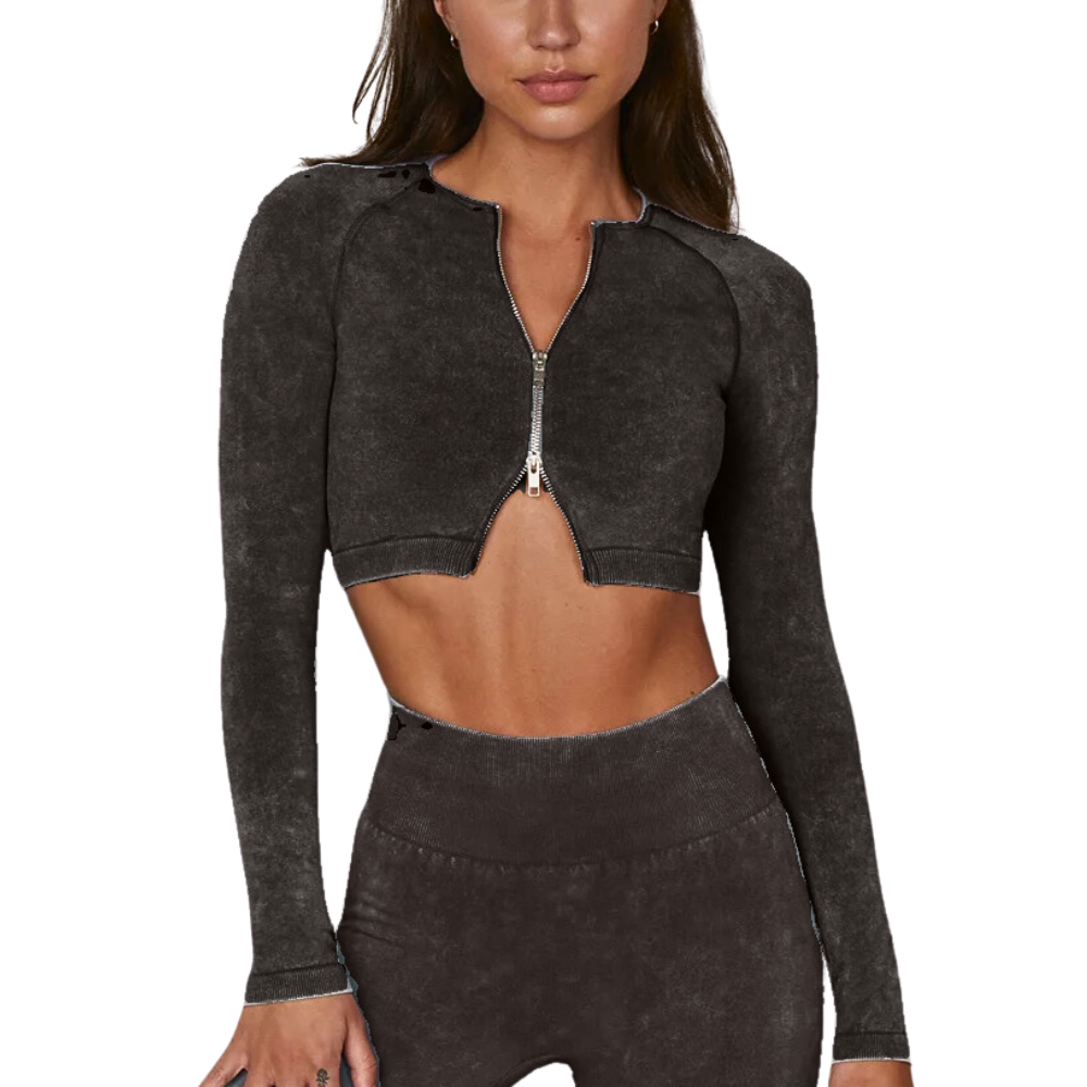 Αθλητικό μακρυμάνικο κροπ τοπάκι με διπλό φερμουάρ στο μπροστινό μέρος σε στυλ κροπ κοντής ζακέτας για να κάνεις την αγαπημένη σου άσκηση με στυλ και άνεση