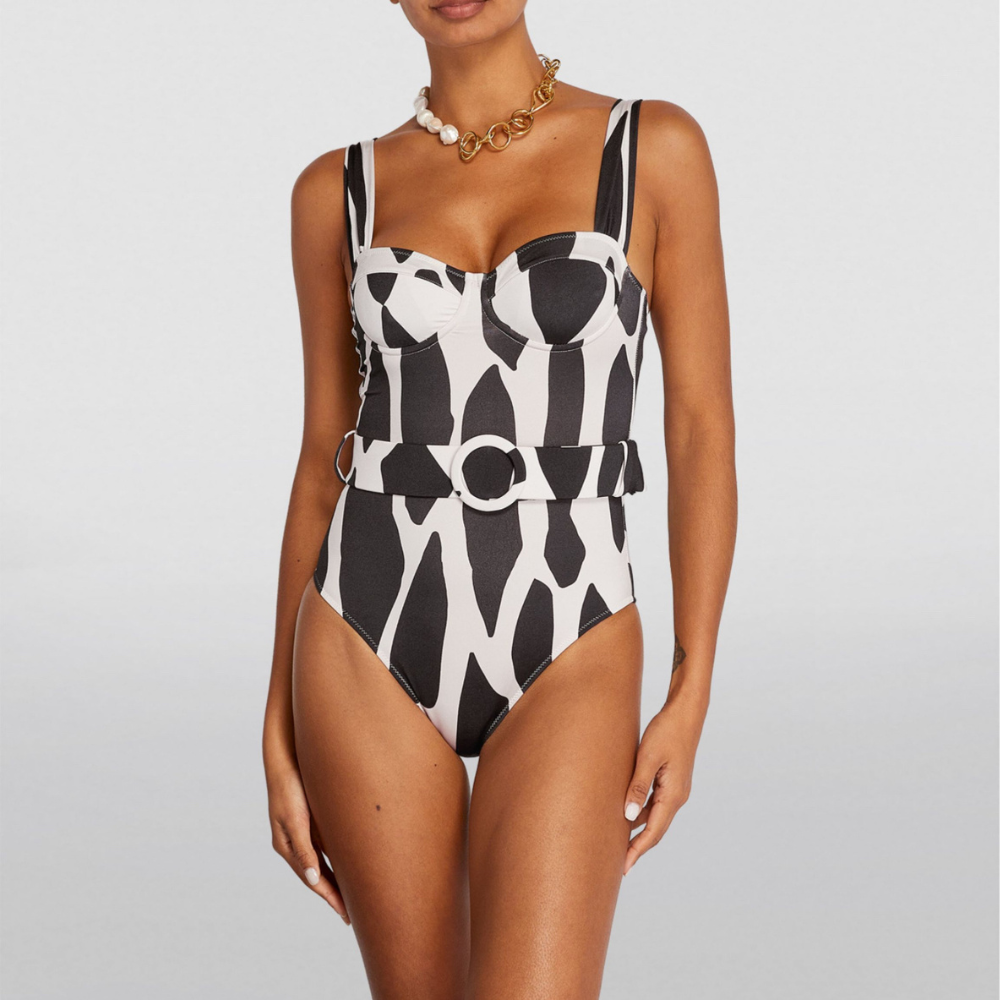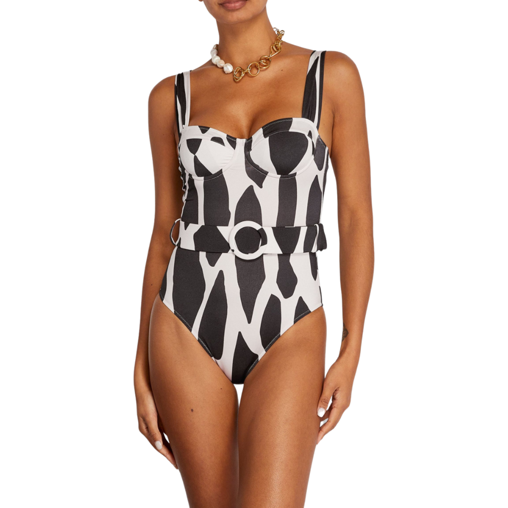 Βιώστε την κομψότητα του καλοκαιριού φορώντας το ασπρόμαυρο σετ ολόσωμου μαγιό και παρεό με ψηλόμεσο κόψιμο JACKIE O. Αυτό το εντυπωσιακό σύνολο είναι σχεδιασμένο για να κάνετε αίσθηση είτε χαλαρώνετε δίπλα στην πισίνα είτε απολαμβάνετε μια μέρα στην παραλία. Το σετ περιλαμβάνει ένα ψηλόμεσο ολόσωμο μαγιό με ζώνη στη μέση για ένα πιο σικ αποτέλεσμα και ένα ασορτί παρεό, ιδανικό για να δημιουργήσετε ένα κομψό και συνεκτικό look.