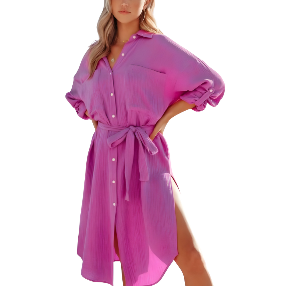 Αναβαθμίστε την καλοκαιρινή σας γκαρνταρόμπα με την διαχρονική κομψότητα του Φόρεματος στυλ Πουκάμισου LOUNIA. Διαθέσιμο σε τρία εκπληκτικά χρώματα, αυτό το φόρεμα είναι σχεδιασμένο για τη σύγχρονη γυναίκα που εκτιμά τόσο το στυλ όσο και την άνεση. Φανταστείτε να περπατάτε στην παραλία ή να απολαμβάνετε ένα χαλαρό brunch, νιώθοντας το απαλό ύφασμα να ρέει πάνω σας. Ο ευέλικτος σχεδιασμός το καθιστά ιδανικό για κάθε περίσταση, είτε ντύνεστε για την παραλία είτε για μια χαλαρή βόλτα.