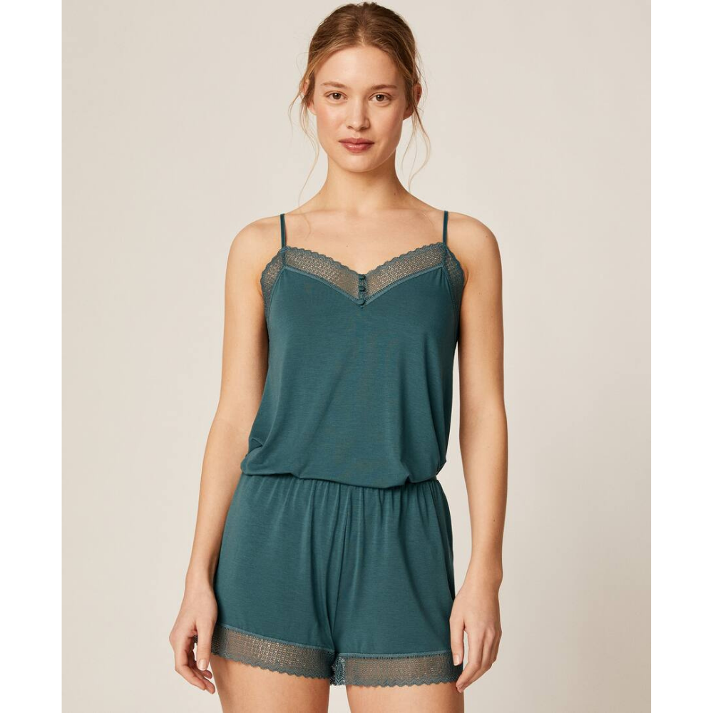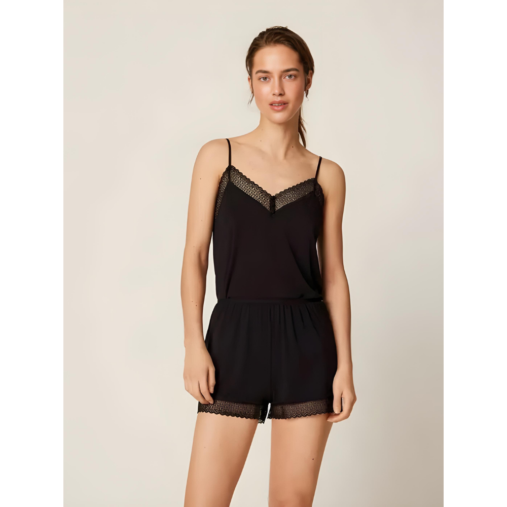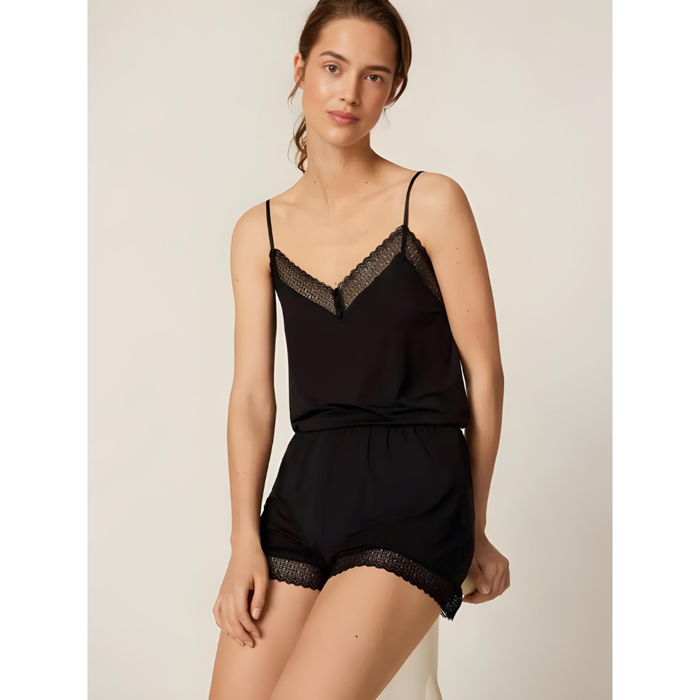 Απολαύστε πολυτελή άνεση με το MATTIE Σετ Πυτζάμας απο Modal. Κατασκευασμένο από υψηλής ποιότητας modal ύφασμα με μια μικρή δόση ελαστάνης, αυτό το σετ δύο τεμαχίων συνδυάζει απαλότητα, ελαστικότητα και διαπνοή για έναν τέλειο ύπνο. Το σετ περιλαμβάνει μπλούζα με δαντελένιες λεπτομέρειες και ρυθμιζόμενες τιράντες για προσαρμοσμένη εφαρμογή και ασορτί σορτς με κομψά τελειώματα από δαντέλα. Ιδανικό για στιγμές χαλάρωσης στο σπίτι ή για ένα άνετο βράδυ, το σετ Mattie είναι η τέλεια επιλογή για κομψή και άνετη νυχτική ένδυση.