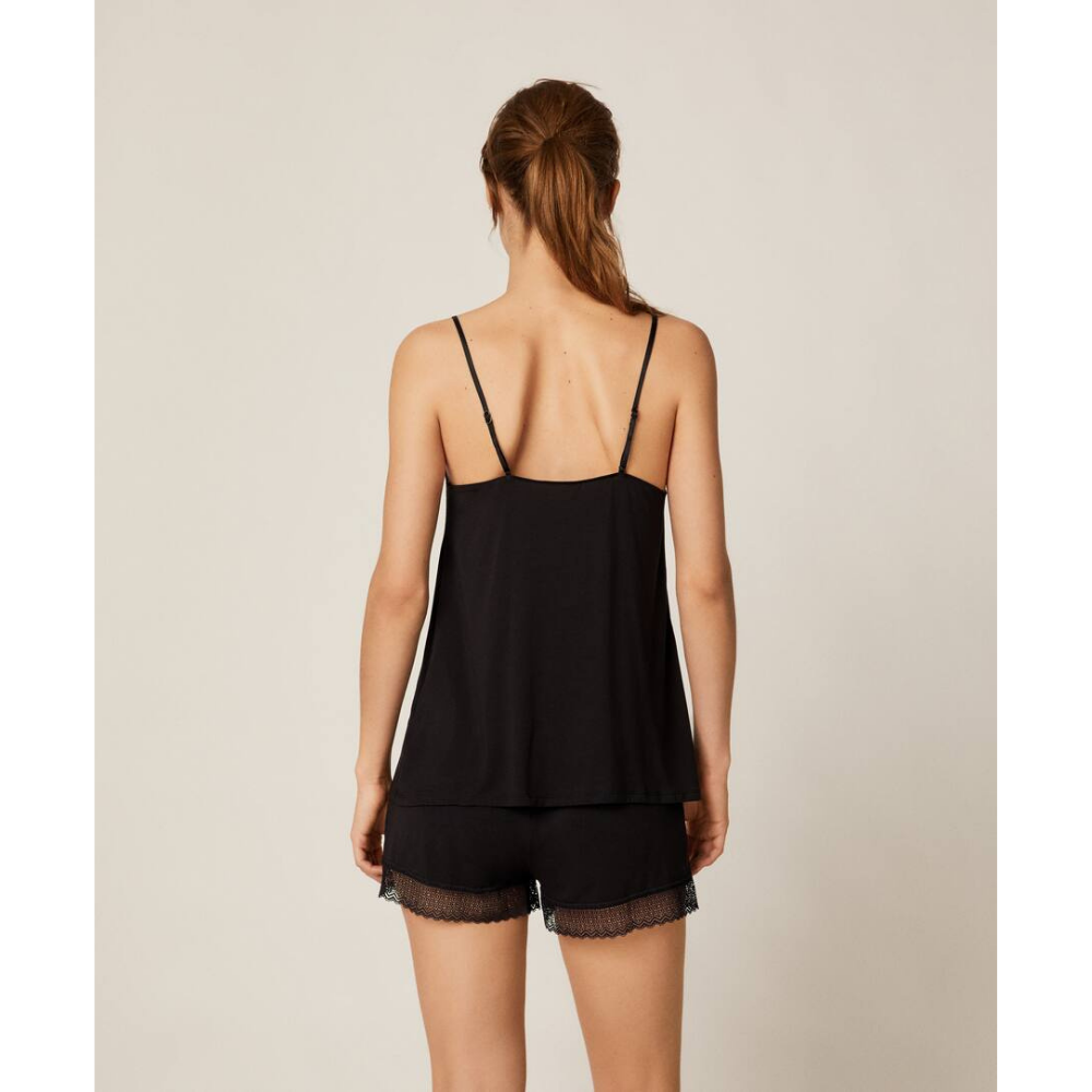 Μπλούζα με Δαντελένιες Λεπτομέρειες: Διαθέτει λεπτομέρειες από δαντέλα και ρυθμιζόμενες τιράντες για προσαρμοσμένη εφαρμογή.
