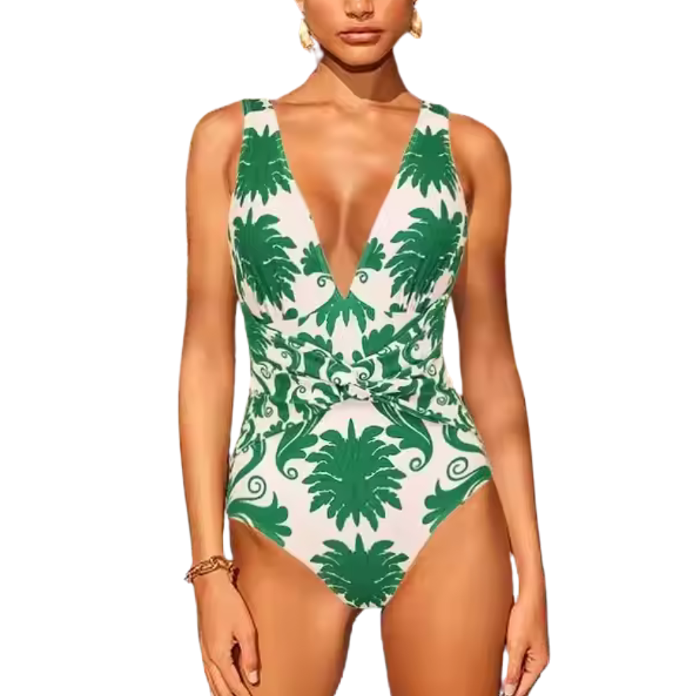Ολόσωμο μαγιό με βαθύ V και σχέδιο που τονίζει τη μέση
