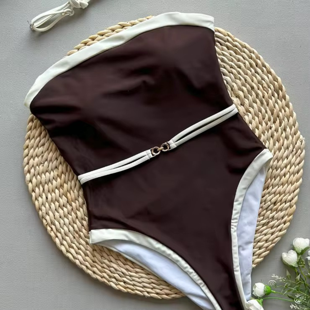 Θες να υιοθετήσεις ένα minimal αλλά απόλυτα σαγηνευτικό look στην παραλία αυτό το καλοκαίρι και δεν ξέρεις τι να διαλέξεις; Το ολόσωμο μαγιό SIENA σε καφέ απόχρωση με λευκές λεπτομέρειες και ζώνη στη μέση είναι η ιδανική επιλογή! Το ψηλό κόψιμο στους μηρούς επιμηκύνει το πόδι, ενώ το λιτό design σε συνδυασμό με τη διακριτική ζώνη δημιουργεί μια σιλουέτα που αποπνέει κλασική κομψότητα και σύγχρονη θηλυκότητα.