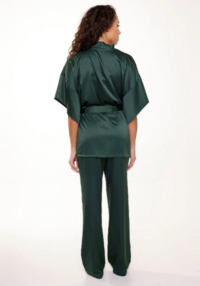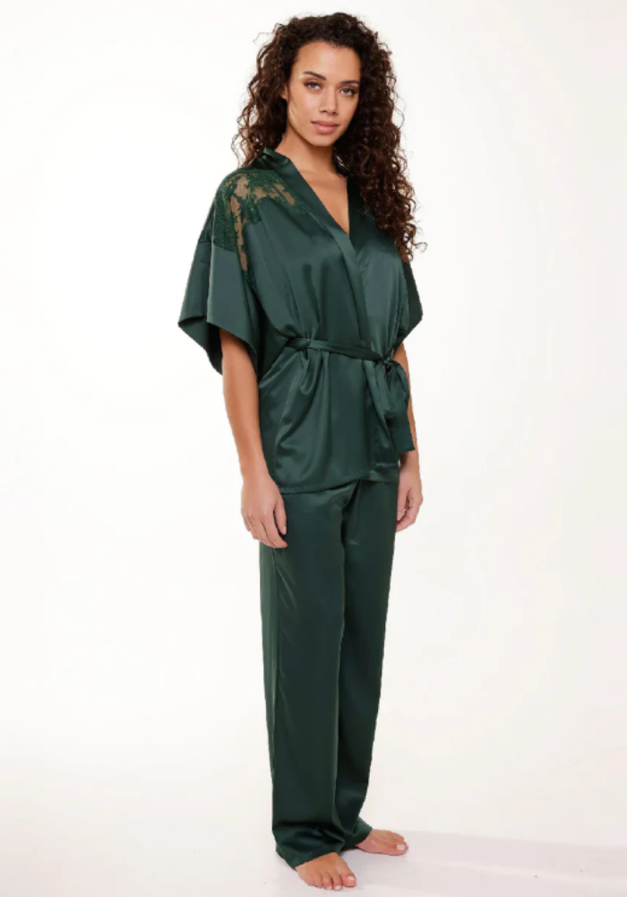 Το FENIA μακρύ παντελόνι πυτζάμας συνδυάζει πρακτικότητα και κομψότητα σε μια άνετη, χαλαρή γραμμή. Το απαλό ύφασμα προσφέρει ευχάριστη αίσθηση στο δέρμα, καθιστώντας το ιδανικό για ύπνο αλλά και για χαλαρές στιγμές στο σπίτι. Ένα διαχρονικό κομμάτι που ολοκληρώνει ιδανικά το σετ με το κιμονό τοπ FENIA.